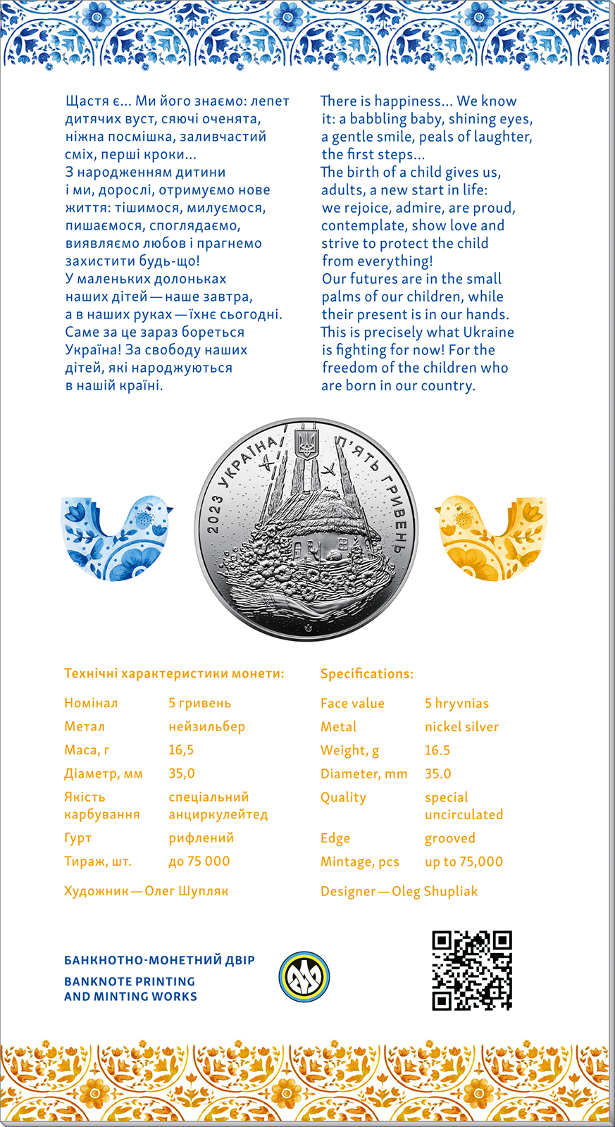 UKRAINA 5 UAH Urodzony w Ukrainie 2023