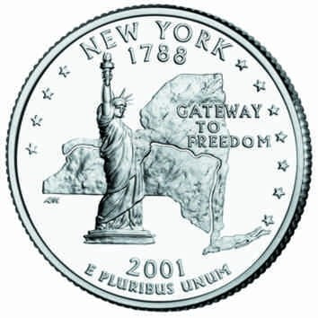 the Statue of Liberty, the state outline, the words, "Gateway to