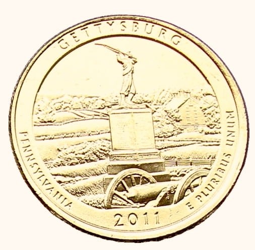USA 25 c Park narodowy Gettysburg nr6 2011 24K Au