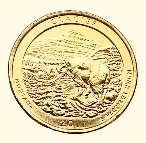 USA 25 c Park narodowy Glacier nr7 2011 24K Au