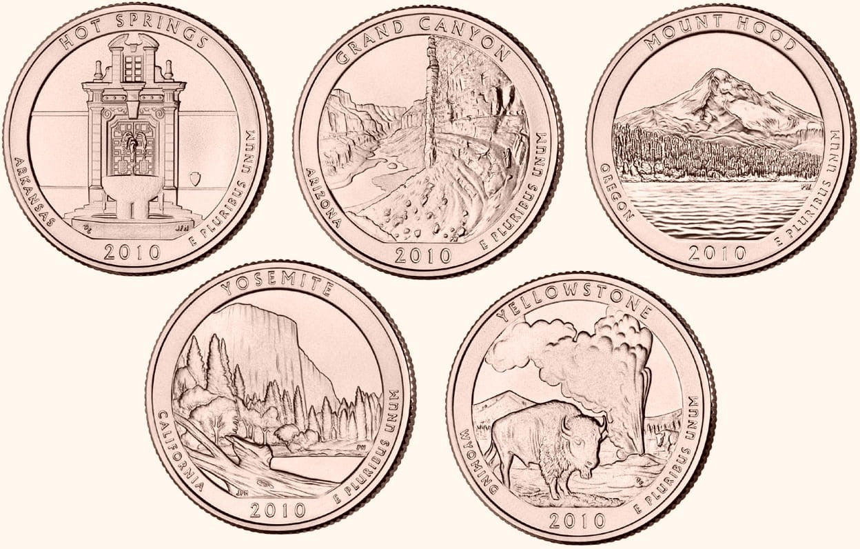 USA 25 c Parki narodowe x5 2010 platerowane złotem