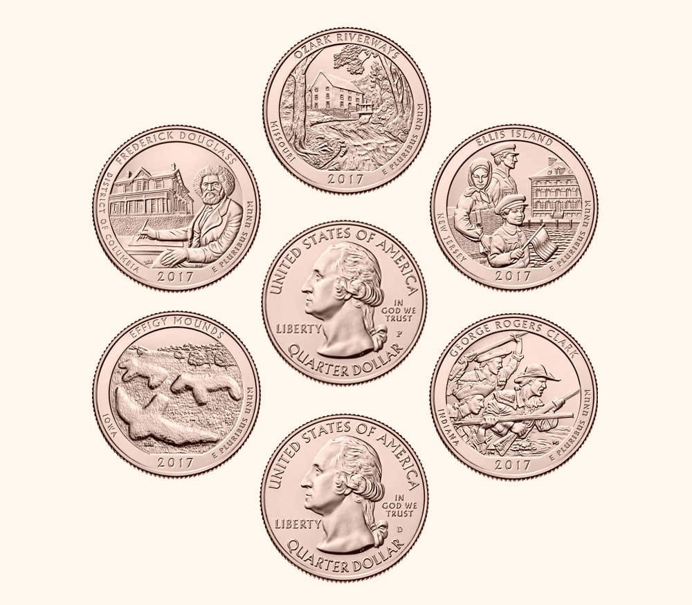 USA 25 c Parki narodowe x5 2017 platerowane złotem