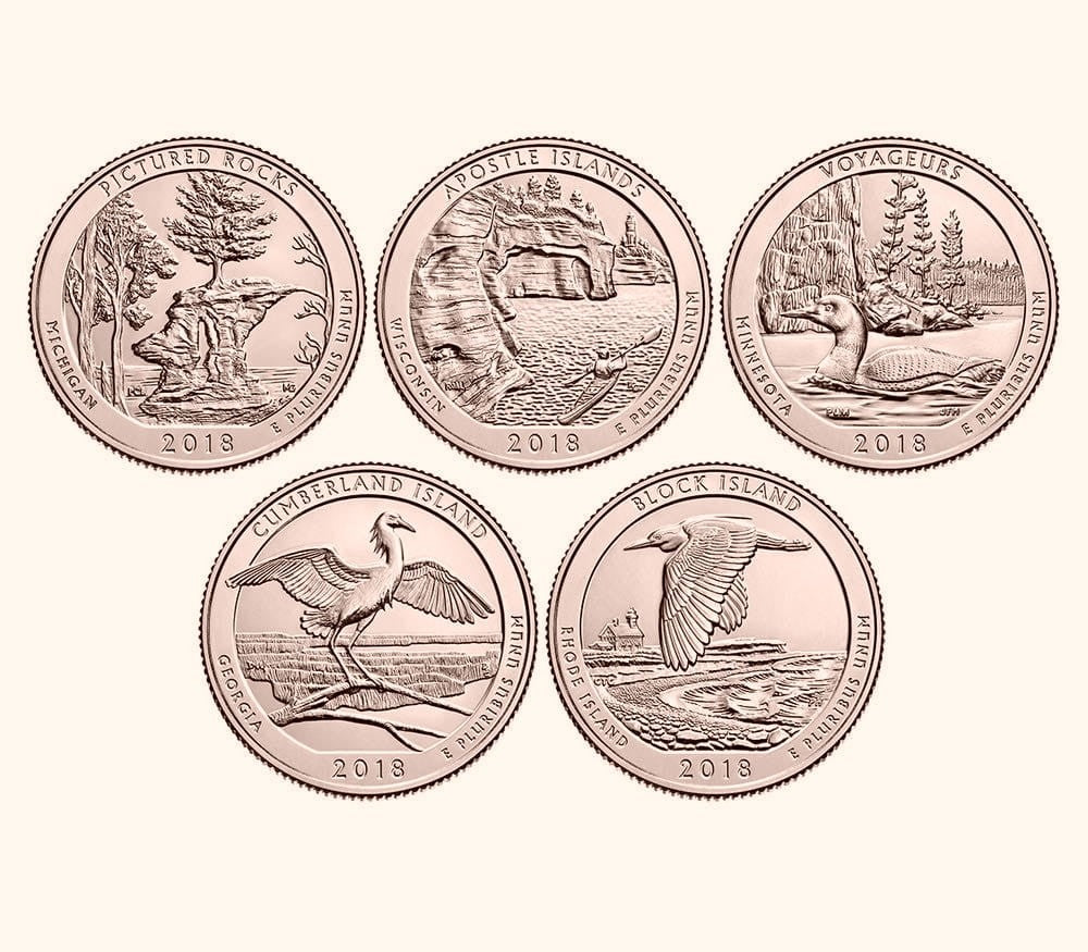 USA 25 c Parki narodowe x5 2018 platerowane złotem