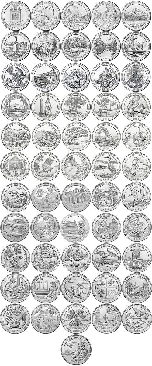 Nowa seria monet 25-centowych planowana na lata 2010-2021. 56 monet prezentujących Parki Narodowe USA z uwzględnieniem parków znajdujących się na terytoriach zależnych. Seria która ma szansę na większą popularność niż hitowe " stanówki"