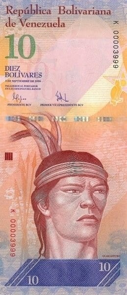 Wenezuela 10 Boliwarów Wódz Guaicaipuro 2009 P-90b