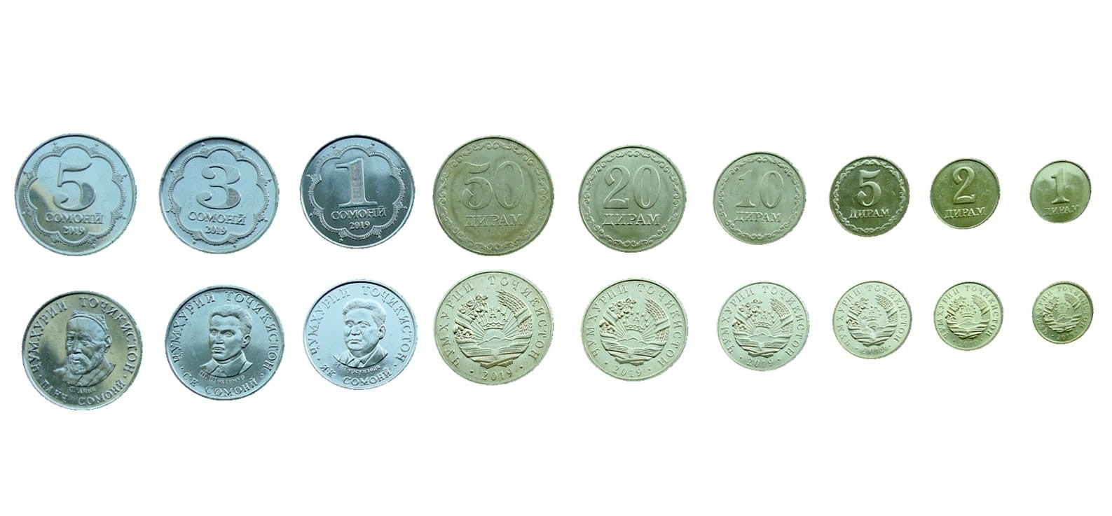 1,2,5,10,20,50 dram, 1,3,5 somoni